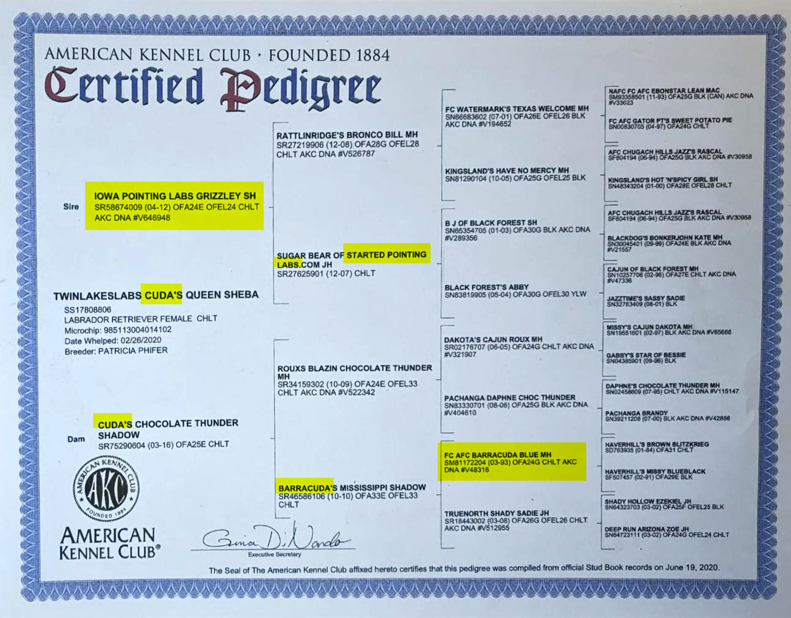 Scroll down to view her Pedigree, Health and DNA test certificates.